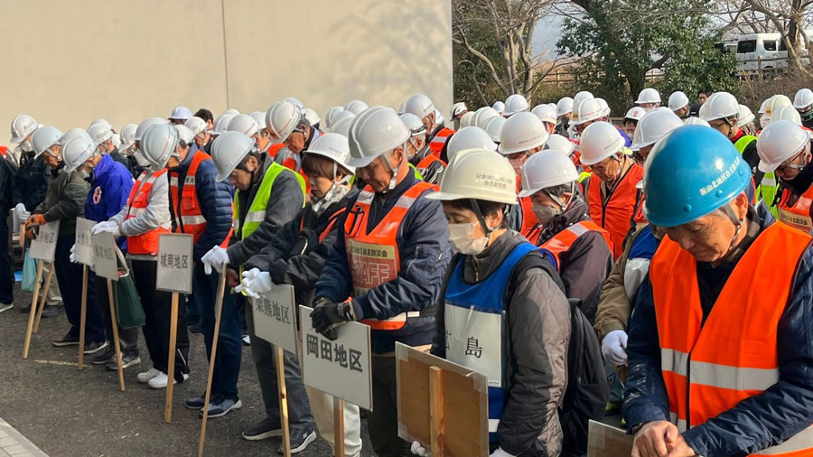 訓練開始前には、震災で犠牲となられた方々へ哀悼の意を表し、参加者全員で黙祷を捧げました。